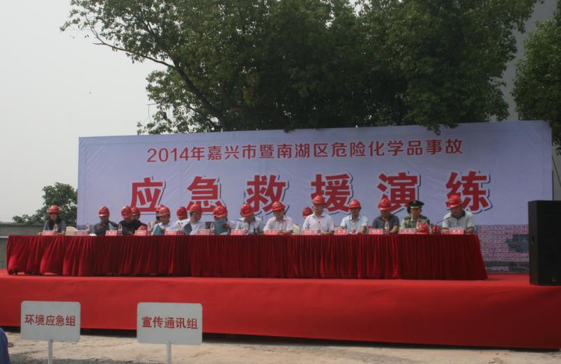 6月12上午,嘉興市暨南湖區(qū)危險(xiǎn)化學(xué)品事故應(yīng)急救援演練在我公司舉行。本次演練由南湖區(qū)副區(qū)長(zhǎng)許翔擔(dān)任總指揮,嘉興市安監(jiān)局、民防局,南湖區(qū)安監(jiān)局、環(huán)保局、消防大隊(duì),大橋鎮(zhèn)人民政府等多家單位的主要領(lǐng)導(dǎo)出席了本次演練。南湖區(qū)相關(guān)部門、鄉(xiāng)鎮(zhèn)街道安監(jiān)站負(fù)責(zé)人、;髽I(yè)負(fù)責(zé)人和安管員等130余人觀摩了本次演練。
