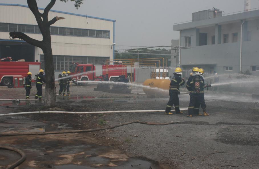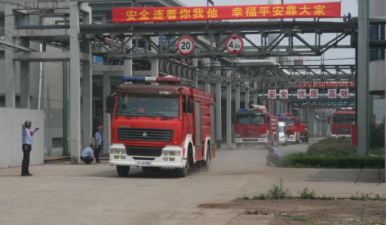 本次演練分為技能表演賽和事故演練兩個(gè)部分。技能表演賽由本公司專職消防隊(duì)員參加實(shí)施,內(nèi)容包括:“原地佩戴空呼器、水帶出水擊靶、著消防服堵漏”三個(gè)消防技能項(xiàng)目;事故演練部分內(nèi)容分為“液氨泄露事故應(yīng)急救援演練”和“甲苯車間火災(zāi)事故應(yīng)急救援演練”兩個(gè)項(xiàng)目,演練人員由南湖區(qū)消防大隊(duì)、大橋鎮(zhèn)、中華化工、衛(wèi)星石化專職消防隊(duì)等四支訓(xùn)練有素的消防隊(duì),以及中華化工企業(yè)職工、南湖區(qū)安監(jiān)局、環(huán)保局等相關(guān)工作人員參加,共計(jì)80余人參加事故應(yīng)急救援演練。