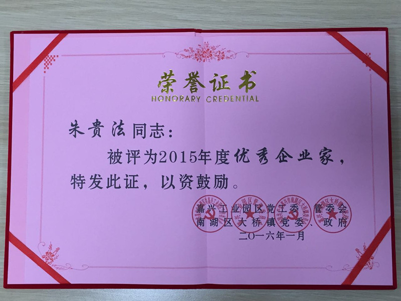 2016年1月28日,南湖區(qū)大橋鎮(zhèn)(嘉興工業(yè)園區(qū))2015年度總結表彰大會在鎮(zhèn)政府禮堂順利召開,我公司憑借較好的業(yè)績,榮獲了2015年度大橋鎮(zhèn)“十強”工業(yè)企業(yè)和納稅超五千萬元突出貢獻獎;朱貴法榮譽董事長榮獲“優(yōu)秀企業(yè)家”榮譽稱號。