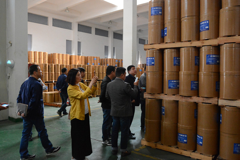 2016年4月18日,河南堅果炒貨商會秘書長張國和一行率團來中華化工參觀考察,公司領導汪建根、丁建勝、朱正清一起接待了考察團一行。在座談會上,汪總通過PPT的形式將公司的基本情況以及對于公司未來發(fā)展做了詳細的介紹,丁副總也針對河南炒貨市場的情況做了專門的交流,張秘書長也做了互動交流,表示以后兩地合作將會更加的密切。座談交流會結束后,參與考察的炒貨界客戶代表實地參觀了公司車間和成品倉庫。