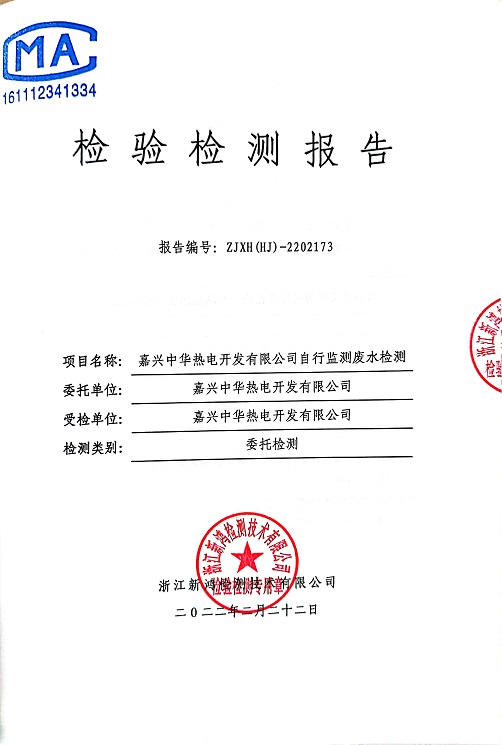 報(bào)告名稱:中華熱電2022.2月廢水檢測(cè)報(bào)告