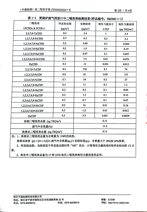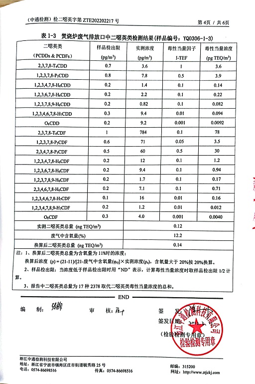 報告名稱:中華化工上半年二噁英檢測報告