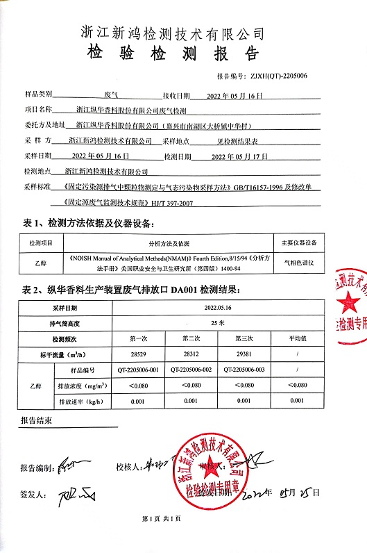 報(bào)告名稱:縱華2022.5月廢氣檢測報(bào)告