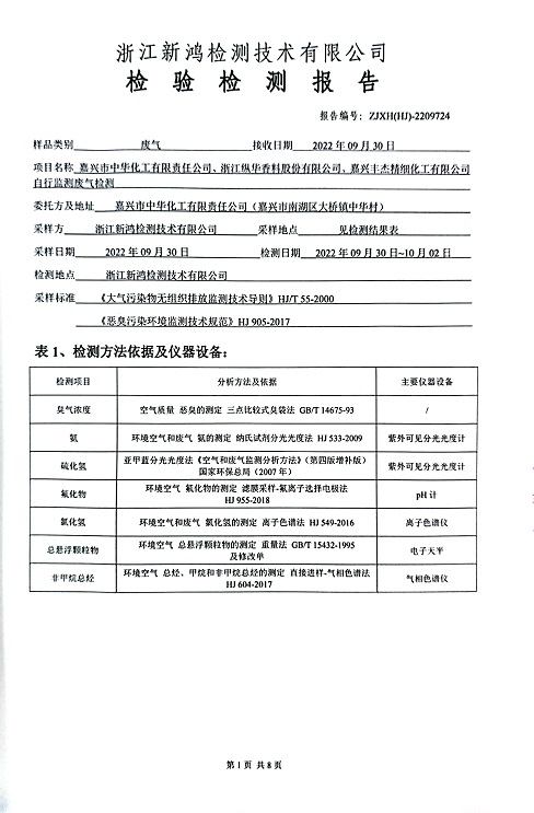 報(bào)告名稱:中華化工、縱華、豐杰2022年3季度廠界檢測(cè)報(bào)告