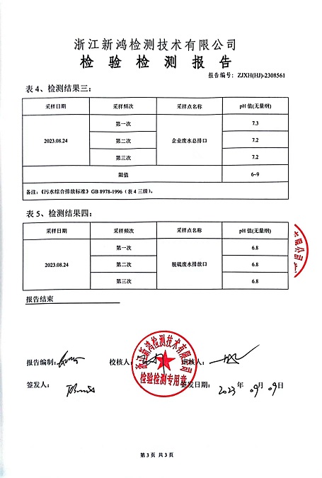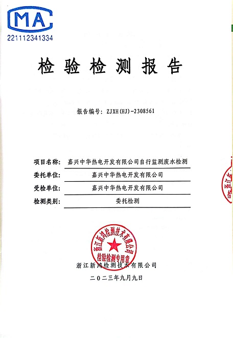 報告名稱:中華熱電2023.8月廢水檢測報告