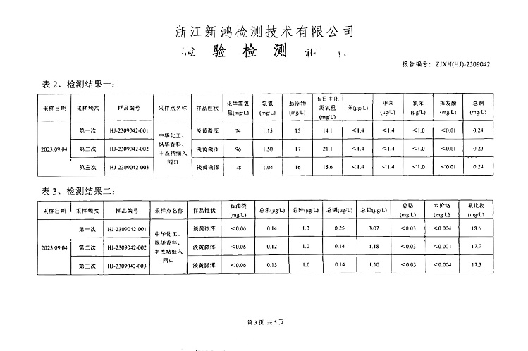 報(bào)告名稱:中華化工、縱華、豐杰2023.3季度廢水檢測報(bào)告