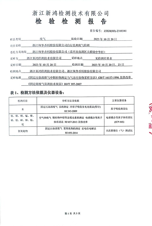 報(bào)告名稱:縱華2023.10月廢氣檢測報(bào)告