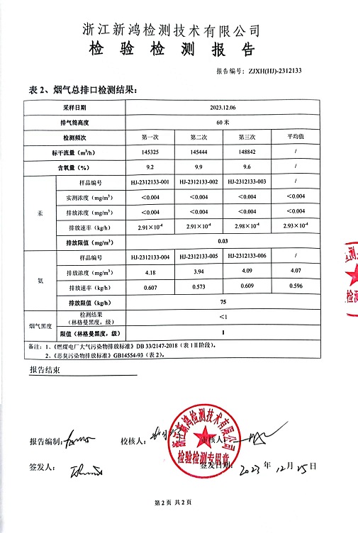 報告名稱:中華熱電2023年12月廢氣檢測報告