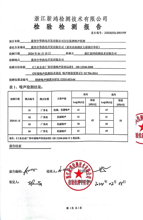 報告名稱:2023年中華熱電1季度噪聲檢測報告