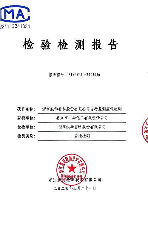 報(bào)告名稱:2024年縱華3月廢氣檢測報(bào)告