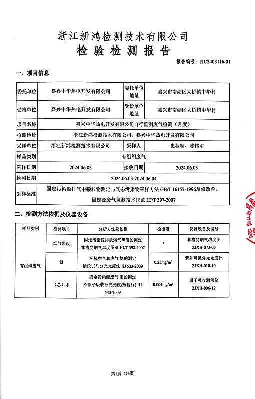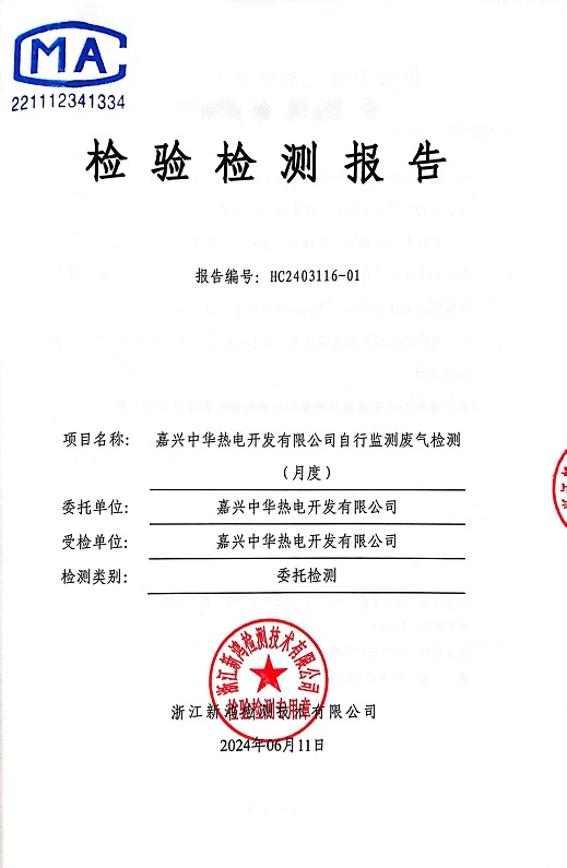 報(bào)告名稱:2024年中華熱電6月廢氣檢測報(bào)告