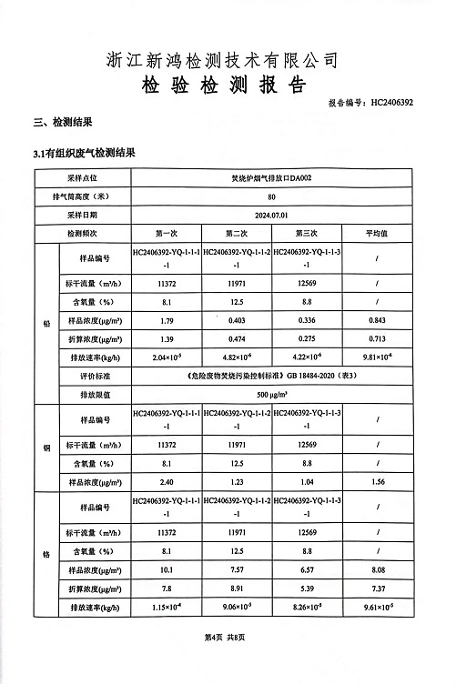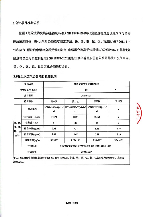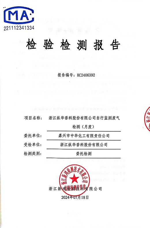 報(bào)告名稱:2024年縱華7月廢氣
