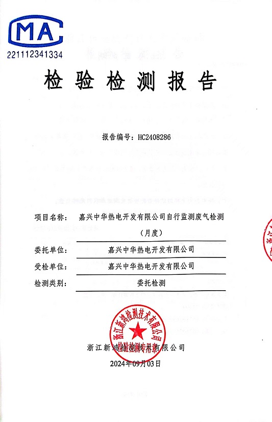 報告名稱:中華熱電8月廢氣檢測報告