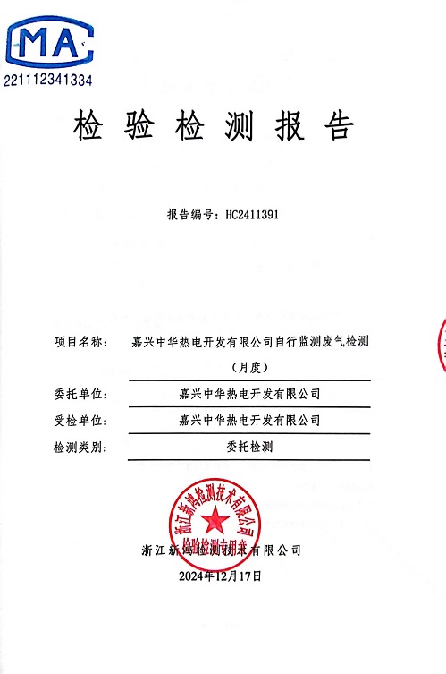 報告名稱:中華熱電12月廢氣檢測報告