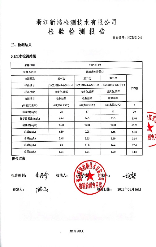 報(bào)告名稱:中華熱電2025年1月廢水檢測(cè)報(bào)告