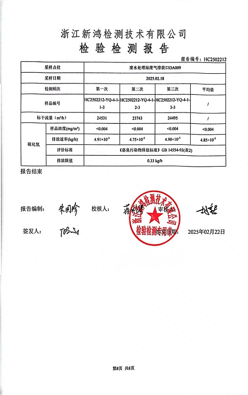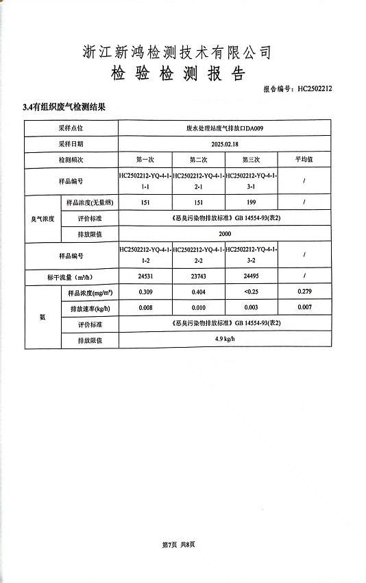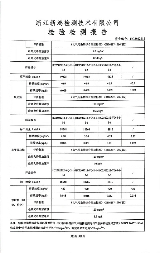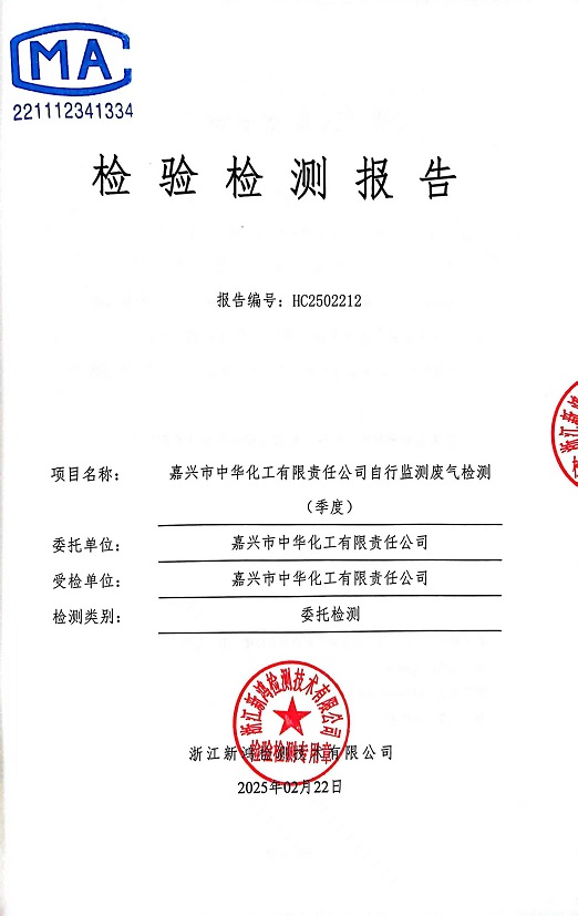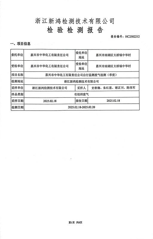 報告名稱:中華化工2025年1季度廢氣檢測報告