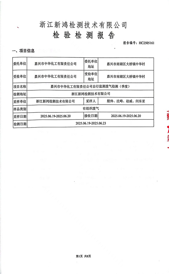 報告名稱:中華化工2季度廢氣檢測報告