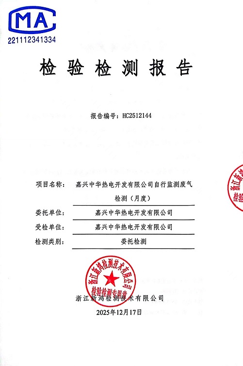 - 中華熱電12月廢氣檢測(cè)報(bào)告