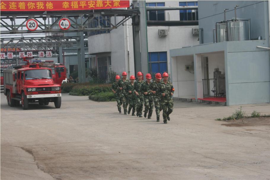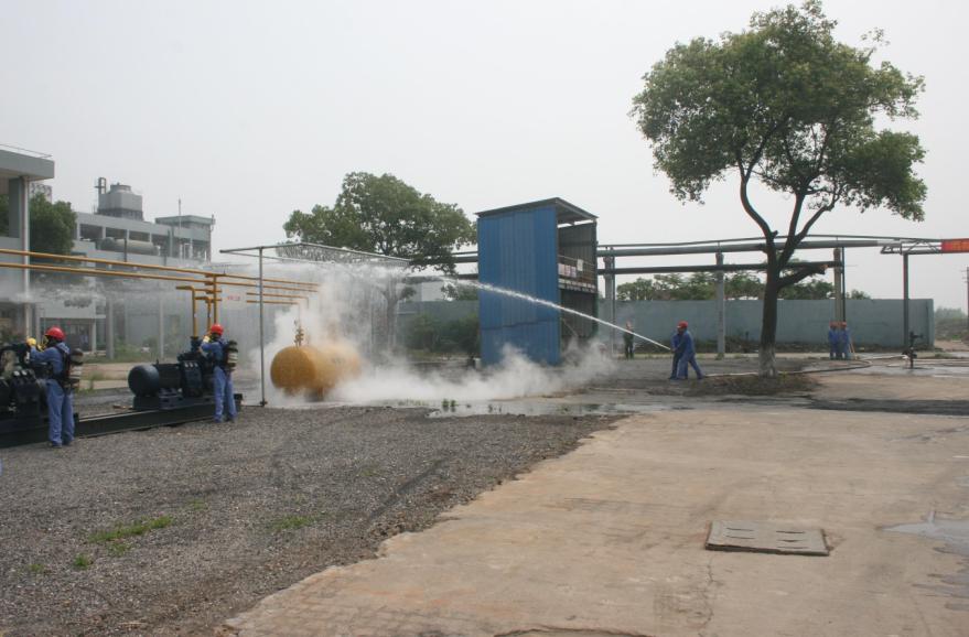 本次演練分為技能表演賽和事故演練兩個(gè)部分。技能表演賽由本公司專職消防隊(duì)員參加實(shí)施,內(nèi)容包括:“原地佩戴空呼器、水帶出水擊靶、著消防服堵漏”三個(gè)消防技能項(xiàng)目;事故演練部分內(nèi)容分為“液氨泄露事故應(yīng)急救援演練”和“甲苯車間火災(zāi)事故應(yīng)急救援演練”兩個(gè)項(xiàng)目,演練人員由南湖區(qū)消防大隊(duì)、大橋鎮(zhèn)、中華化工、衛(wèi)星石化專職消防隊(duì)等四支訓(xùn)練有素的消防隊(duì),以及中華化工企業(yè)職工、南湖區(qū)安監(jiān)局、環(huán)保局等相關(guān)工作人員參加,共計(jì)80余人參加事故應(yīng)急救援演練。