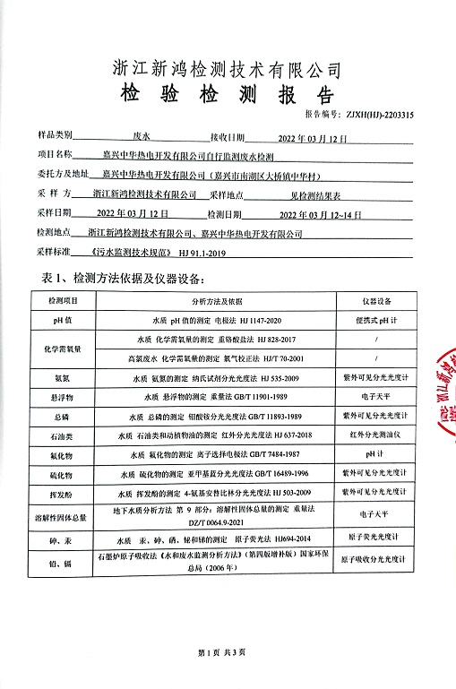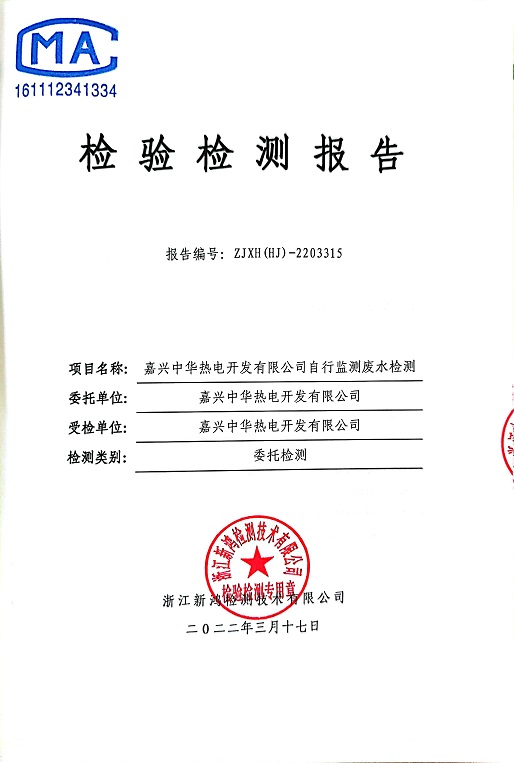 報(bào)告名稱:中華熱電2022.3月廢水檢測報(bào)告