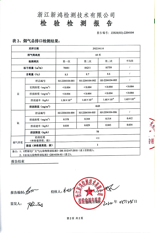 報告名稱:中華熱電2022.4月廢氣檢測報告