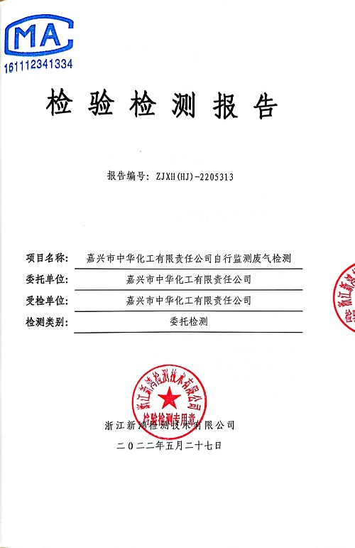 報告名稱:中華化工2022上半年廢氣檢測報告