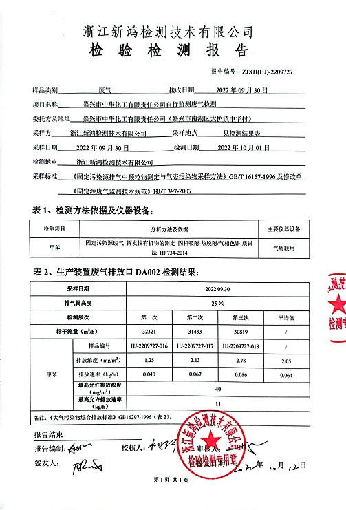 - 中華化工3季度廢氣檢測(cè)報(bào)告