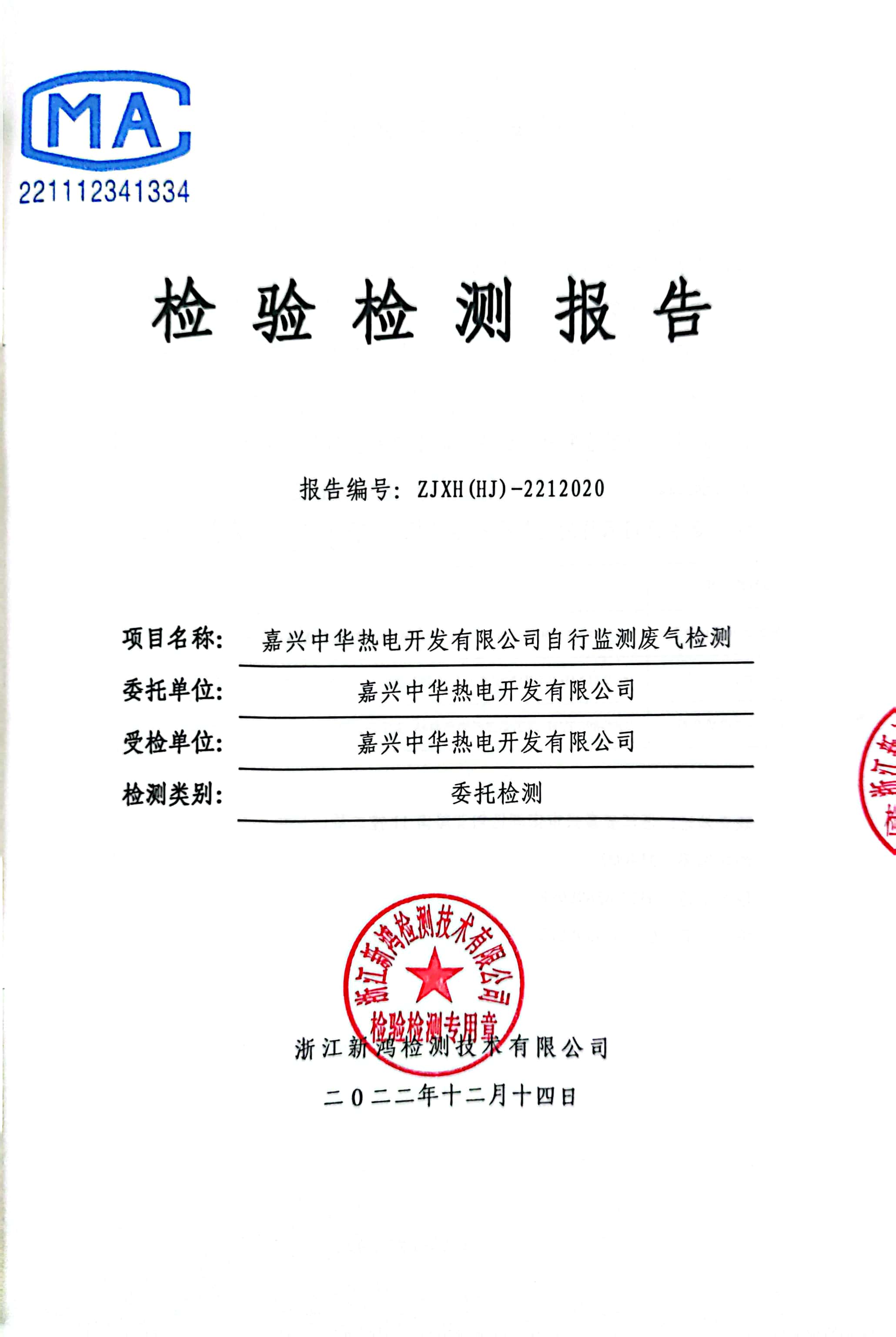 報告名稱:中華熱電2022年12月廢氣檢測報告
