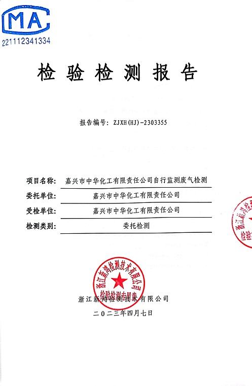 報(bào)告名稱:中華化工2023年上半年廢氣檢測報(bào)告