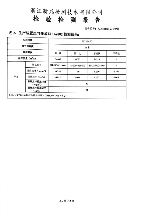 報(bào)告名稱:中華化工2023.4月廢氣檢測(cè)報(bào)告