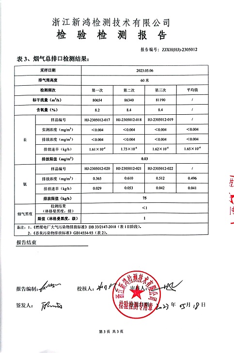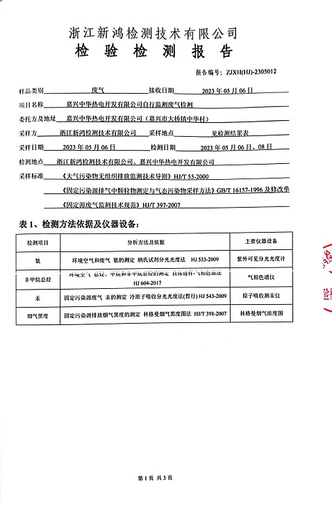 報(bào)告名稱:中華熱電2023.5月廢氣檢測(cè)報(bào)告