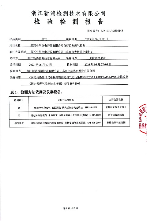 報告名稱:中華熱電2023.6月廢氣檢測報告