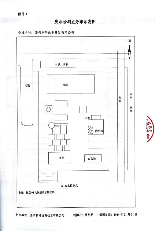 報告名稱:2024年中華熱電1月廢水檢測報告