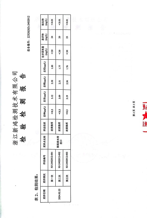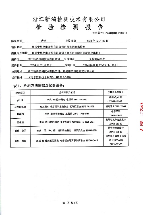 報告名稱:2024年中華熱電2月廢水檢測報告
