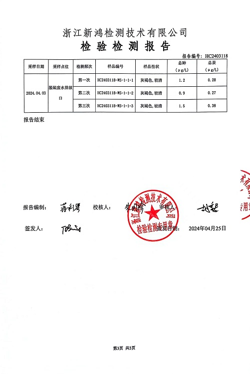 報(bào)告名稱:2024年中華熱電4月廢水檢測報(bào)告