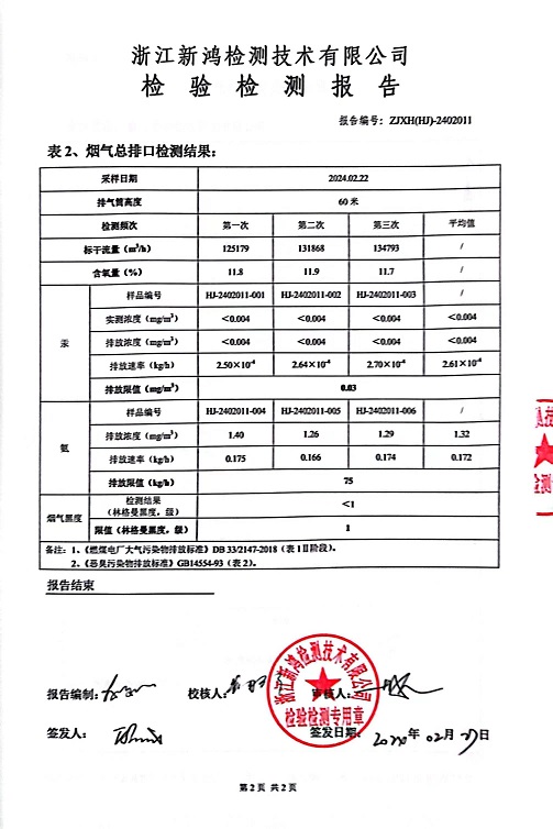 報告名稱:2024年中華熱電2月廢氣檢測報告