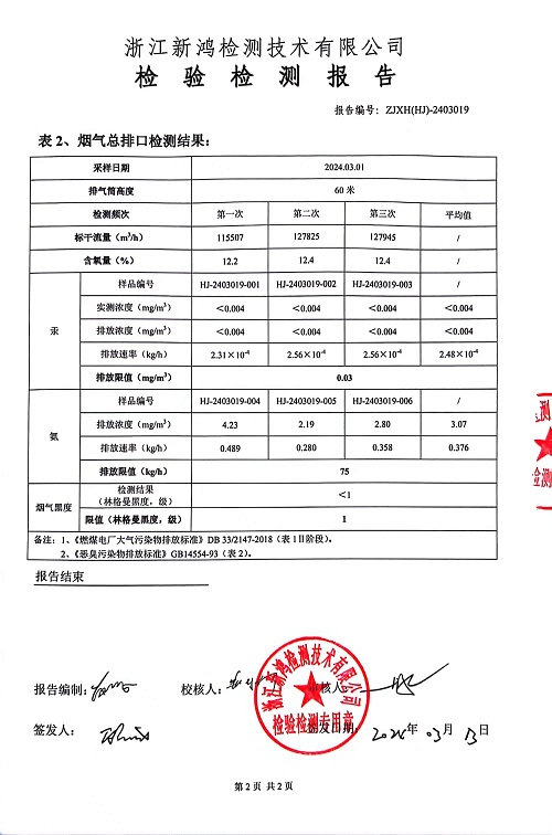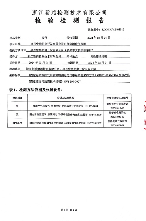 報告名稱:2024年中華熱電3月廢氣檢測報告