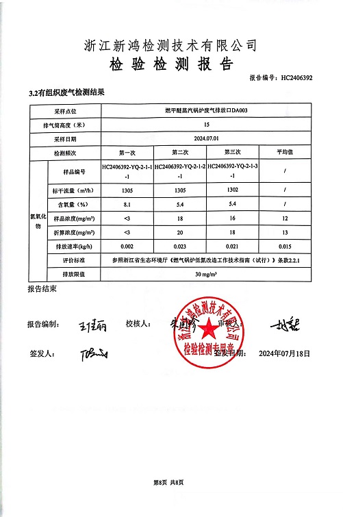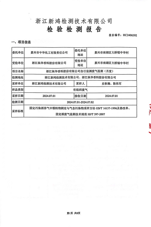 報(bào)告名稱:2024年縱華7月廢氣