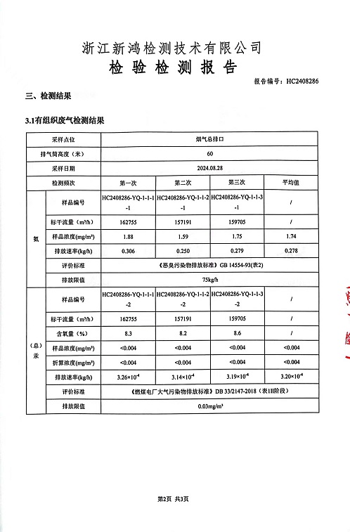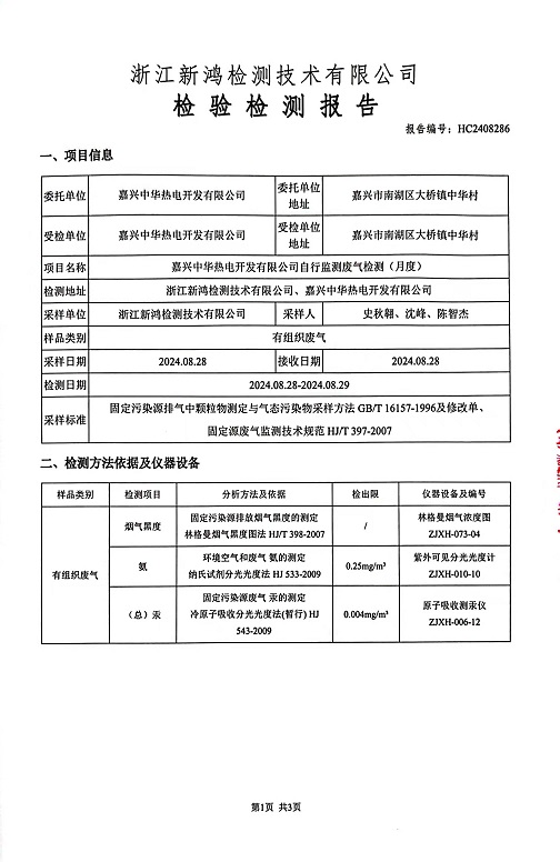 報(bào)告名稱:中華熱電8月廢氣檢測報(bào)告