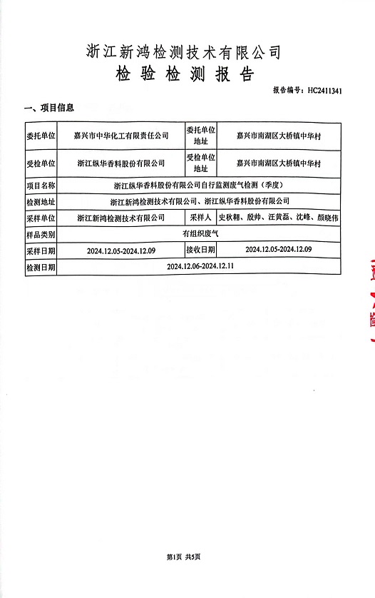 報(bào)告名稱:縱華香料12月廢氣檢測(cè)報(bào)告
