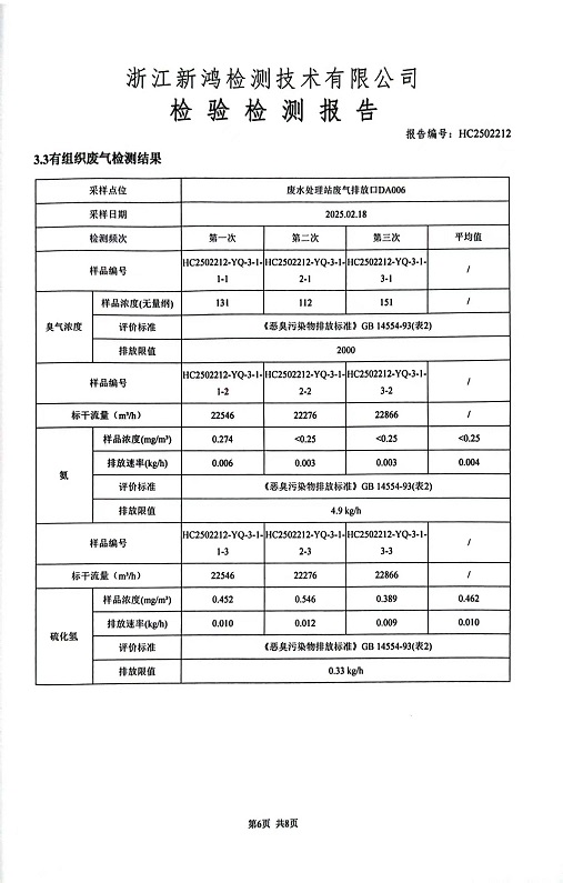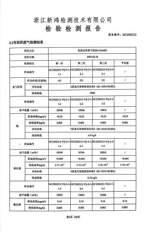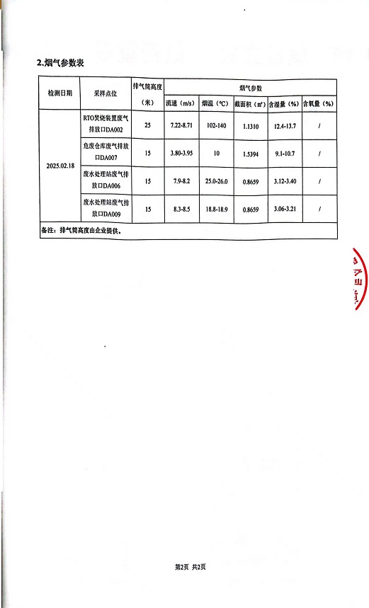 報告名稱:中華化工2025年1季度廢氣檢測報告